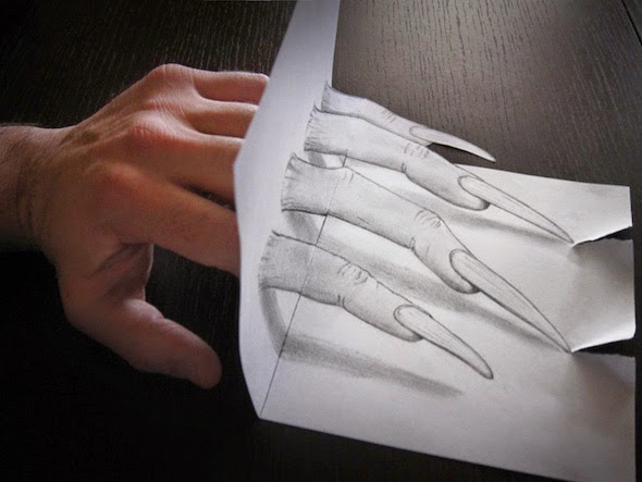This is the work of a popular Italian illustrator Alessandro Diddi. You certainly can't believe your eyes. He is a genius. We are sure there are many other incredible anamorphic illusions created by him using just pencil and paper but this one caught our attention the most. It really feels that those finger nails exist in real world. It is incredible how he can fool our eyes into believing something that is just an illustration. Can you try your hand at such an art? If you can, do share with us.