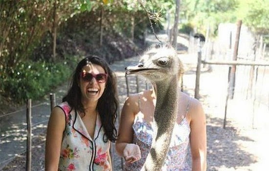 Now this is extremely funny. It is evident with the big laugh on the face of the girl. She is laughing because an ostrich literally photobombed a perfect snap. Someone was taking a snap of them together but out of nowhere, the ostrich came in between or lifted its head covering the second girl's head entirely. Moreover, it feels like the girl on the right has a head of ostrich. That is ultimately funny and rib tickling. These moments mark for some humorous memories.