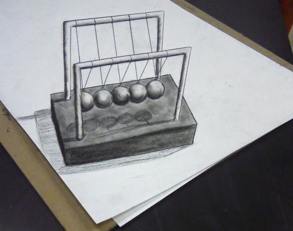 This is undoubtedly an amazing work of 3D anamorphic pencil illustration. The artist has shaded so well that nobody can deny the fact that it is literally standing on the surface. You almost expect the balls to move after the very first look. It's beautiful right and yes marvelously done. It is crazy how some artists can create such an illusion that forces our mind to think something that is not real.